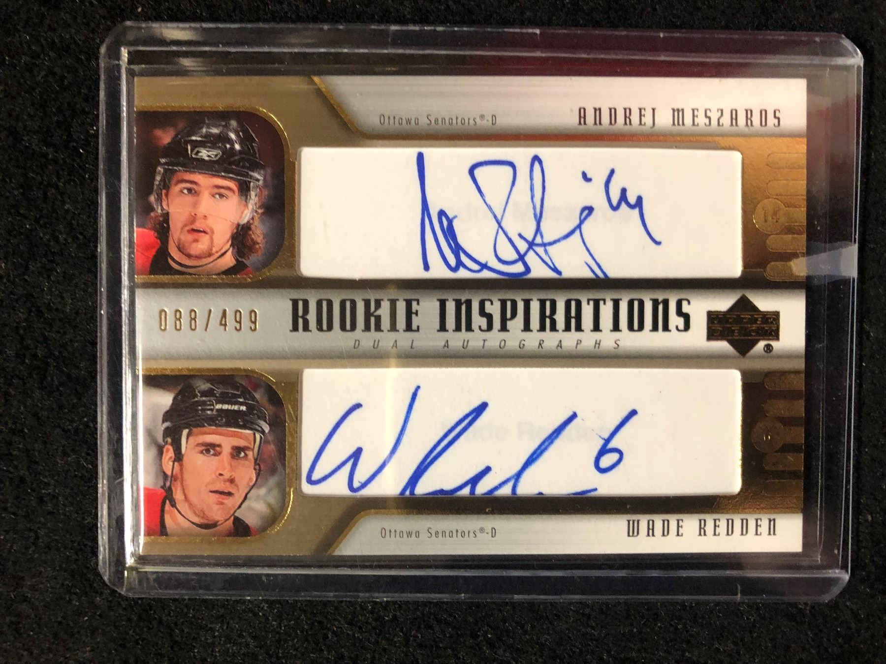 UPPER DECK ROOKIE INSPIRATIONS DUAL AUTOGRAPHS (MESZAROS/ REDDEN) HOCKEY CARD