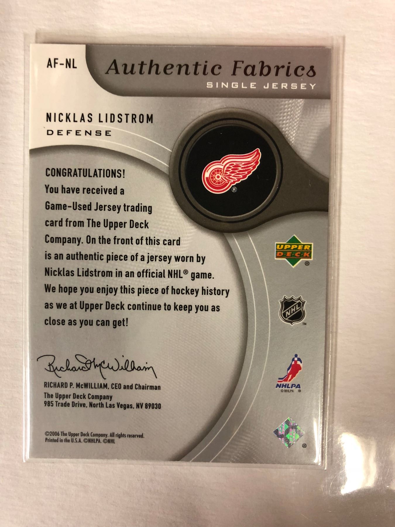 UPPER DECK SP AUTHENTIC FABRICS SINGLE JERSEY NICKLAS LIDSTROM
