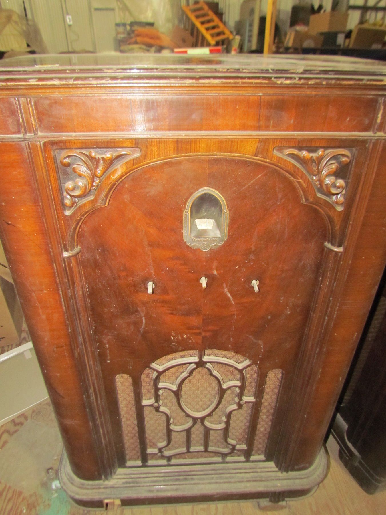UPRIGHT CABINET RADIO (WESTINGHOUSE) VENEER IS GOOD *25 x 14.5 x 40 INCHES