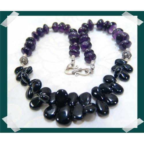 PLEASE note I only ship to Canada and USA. If paypals is used the address MUST BE CONFIRMED and signature required is used for delivery with paypals. Thanks Steven <p>Deep Rich Black Onyx Briolette teamed with amethyst rondells Gemstone Necklace..... <p>