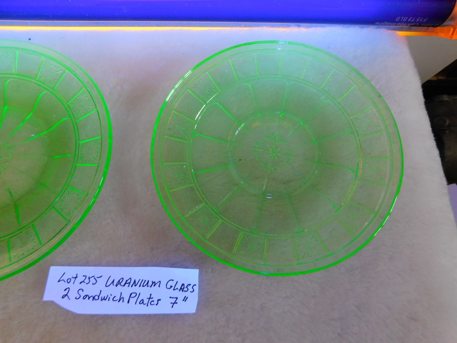 URANIUM GLASS SAUCER AND URANIUM GLASS DAINTY PLATE