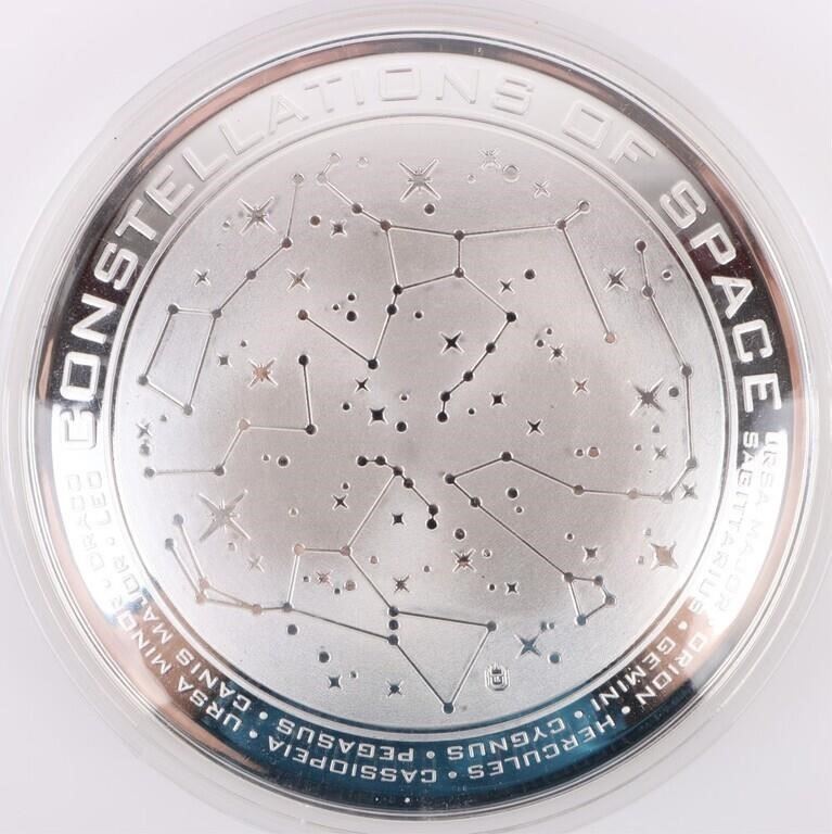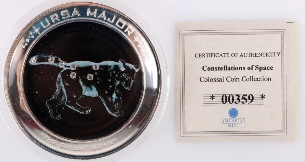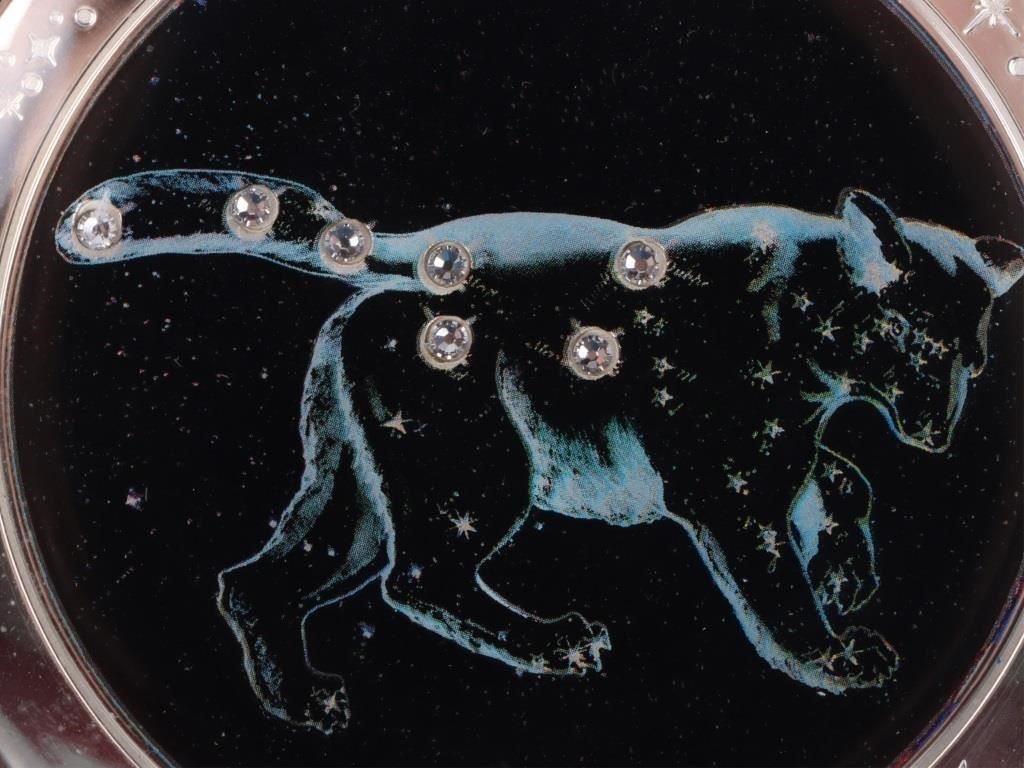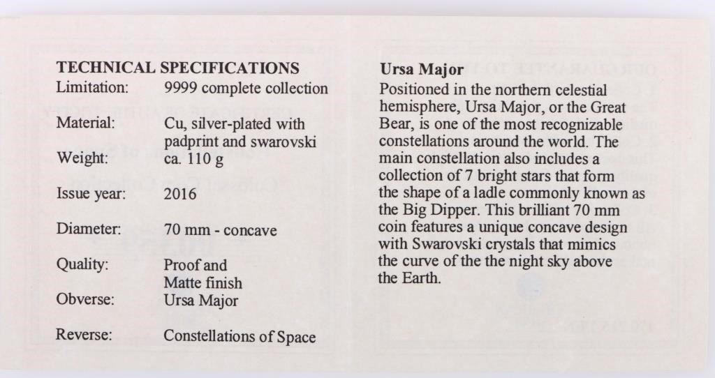 Ursa Major concave commemorative coin proof made of copper, plated with silver and adorned with 7 Swarovski crystals.