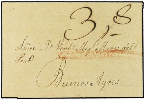 1809 (30-Enero) HAMBURGO a BUENOS AYRES. Carta circulada privadamente hasta Montevideo y alli depositada al correo. Marca lineal MONTEVIDEO en rojo (estampación debil).
