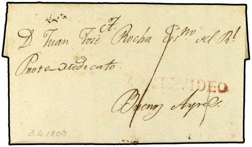 1809 (3-Abril) MONTEVIDEO a BUENOS AIRES. Marca lineal MONTEVIDEO en rojo (estampación débil).