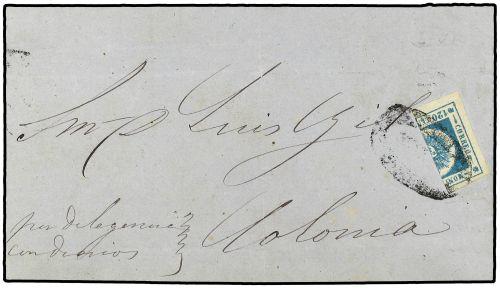 16 (1860 CA.) MONTEVIDEO a COLONIA. 120 ctvos. azul bisectado para ser usado como 60 ctvos. RARA.
