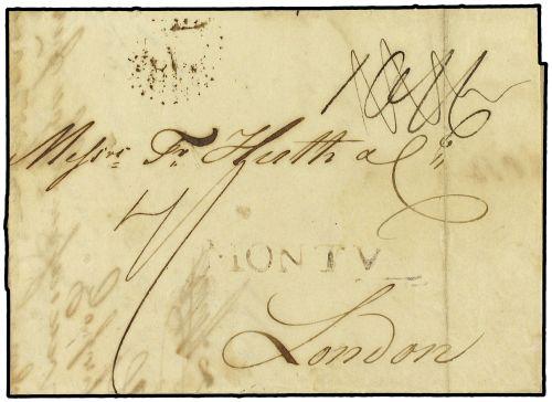 1833 (20-Febrero) MONTEVIDEO a LONDRES. Marca MONTVº en rojo oxidado.