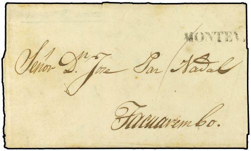 1852 (14-Oct.) MONTEVIDEO a TACUAREMBO. Marca lineal MONTEVº. en negro.