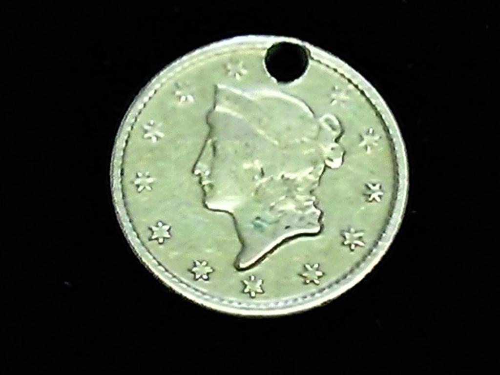 US $1 GOLD COIN HOLED .04837 OZ. AGW