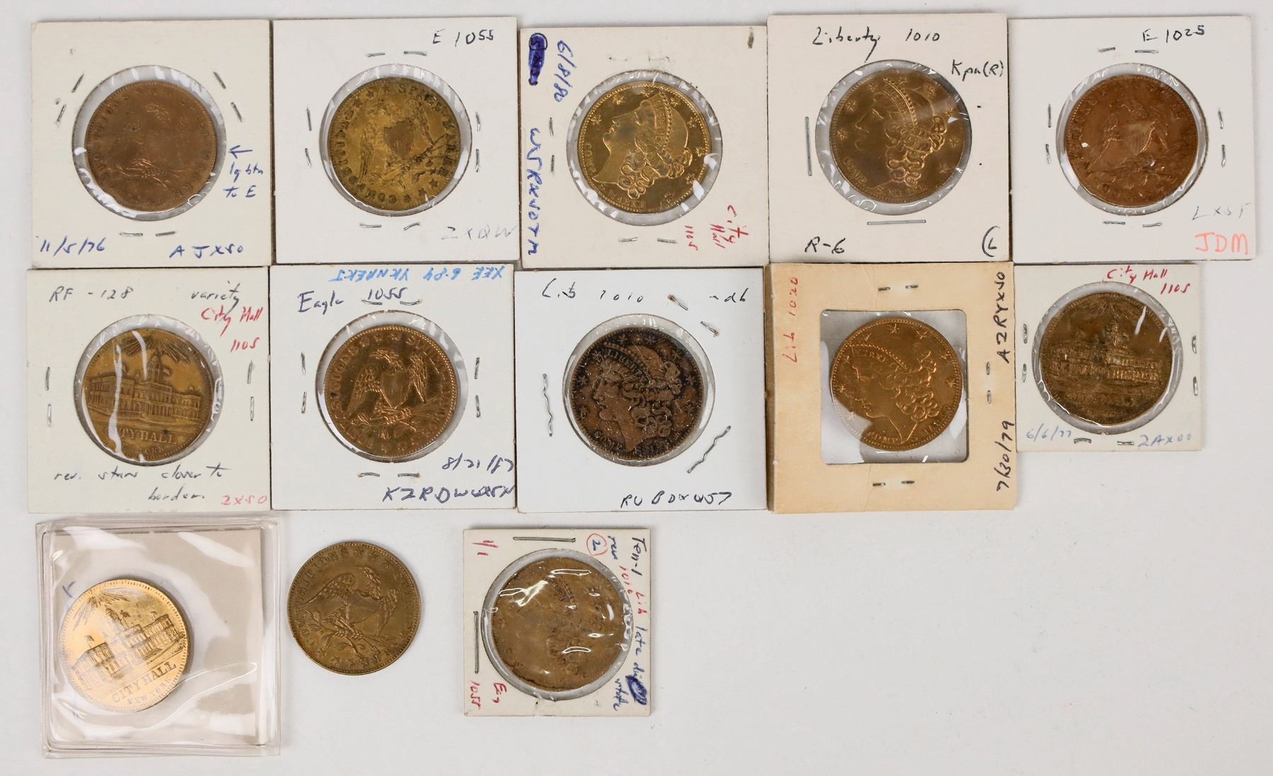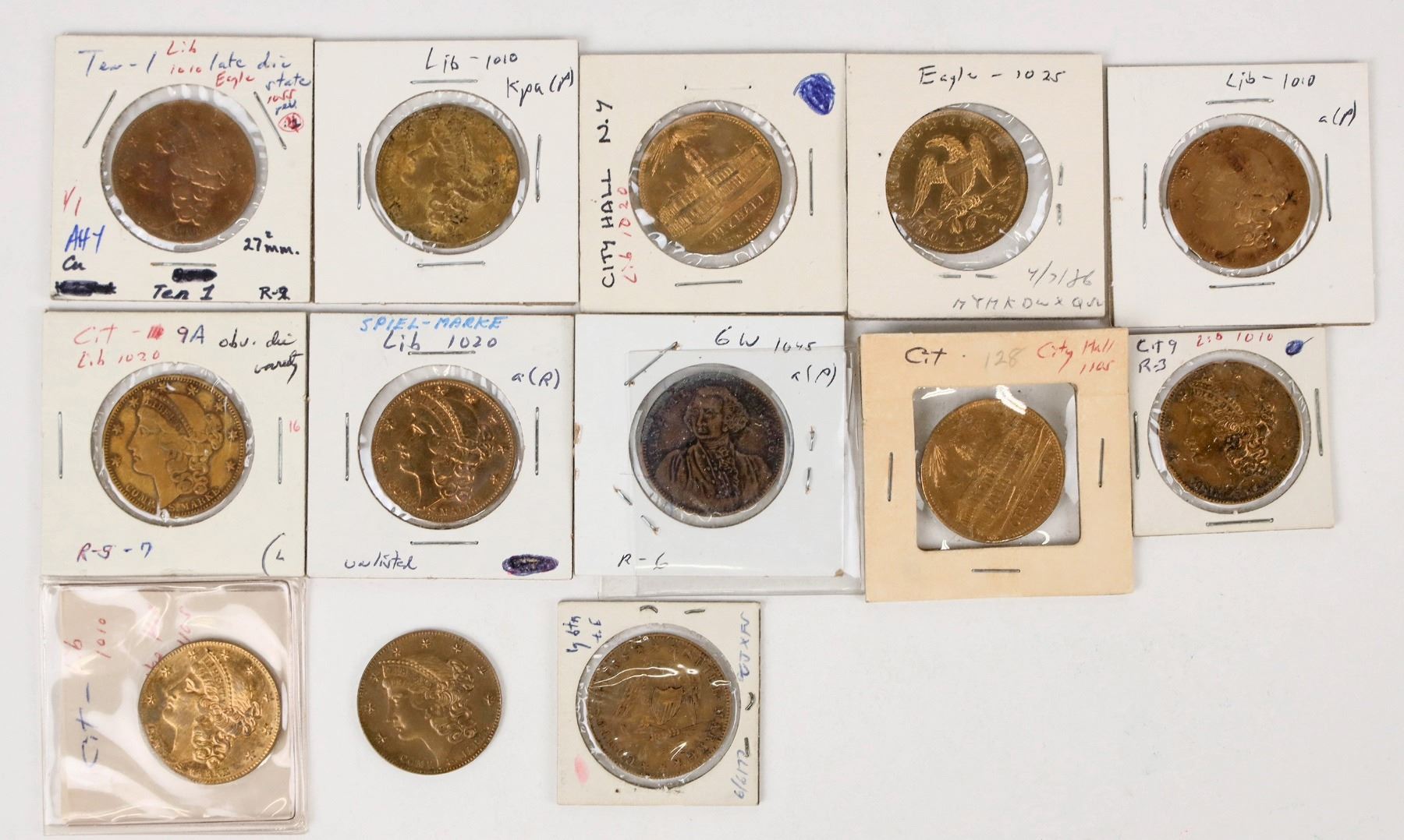 Classic counters resembling US $10 gold coins. These were very rare until Fauver died and his massive collection came to market, now long distributed. A number of these here are worthy of third party grading.