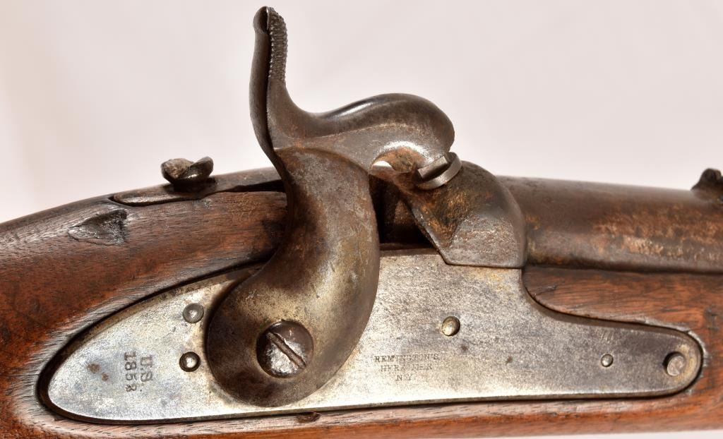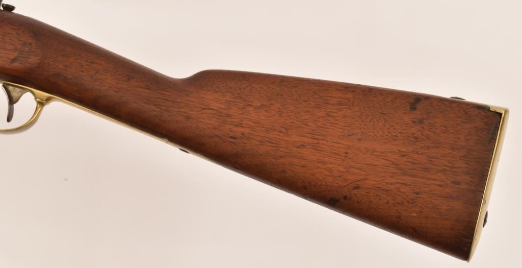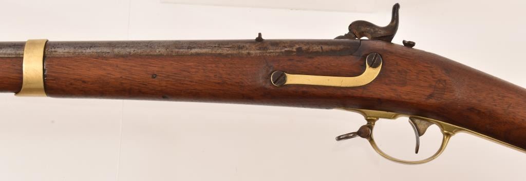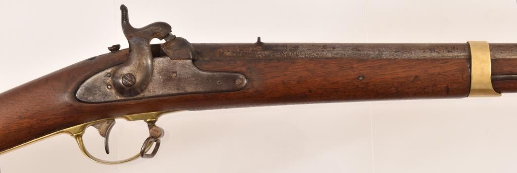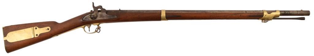 NVSN, .54 caliber, 33" barrel, US 1841 Percussion Rifle, "Mississippi". Lock plate marked "REMINGTON's/HERKIMER/ N.Y.", behind hammer marked "US/1852", brown and case hardened finish, brash furniture, walnut stock, correct ramrod. Circa 1853. Dark bore, mottled silver brown barrel, silver grey lock plate. Brass furniture has been cleaned, very good wood with cartouches, excellent mechanically.