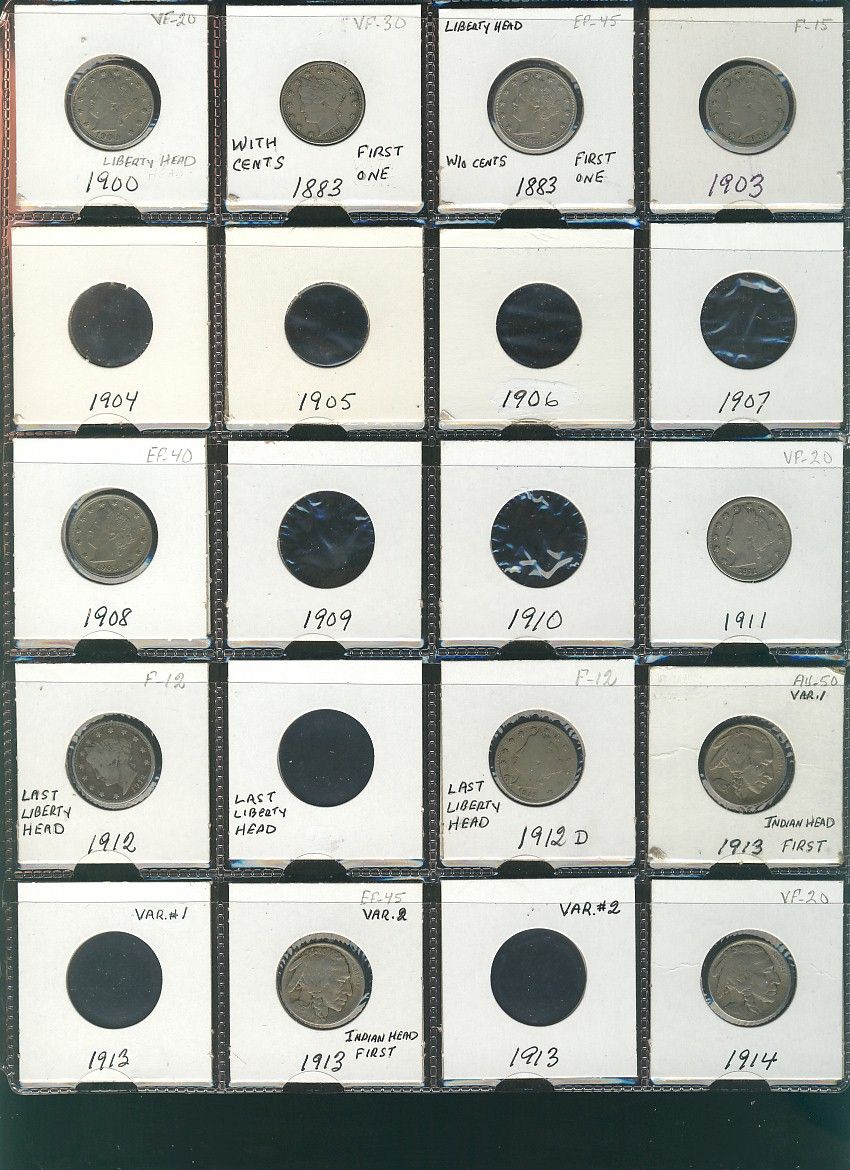 US 1883 5¢ to 2012 incomplete Date Set. Includes 168+ pcs from VG tu Proof. No key issues.