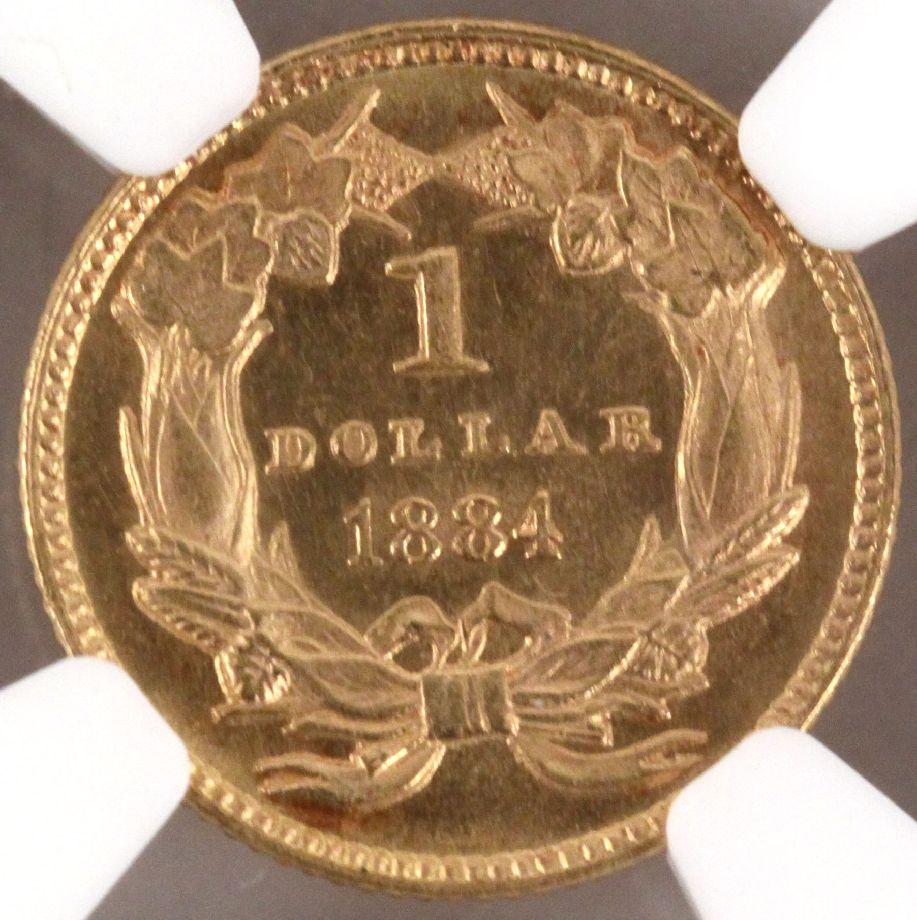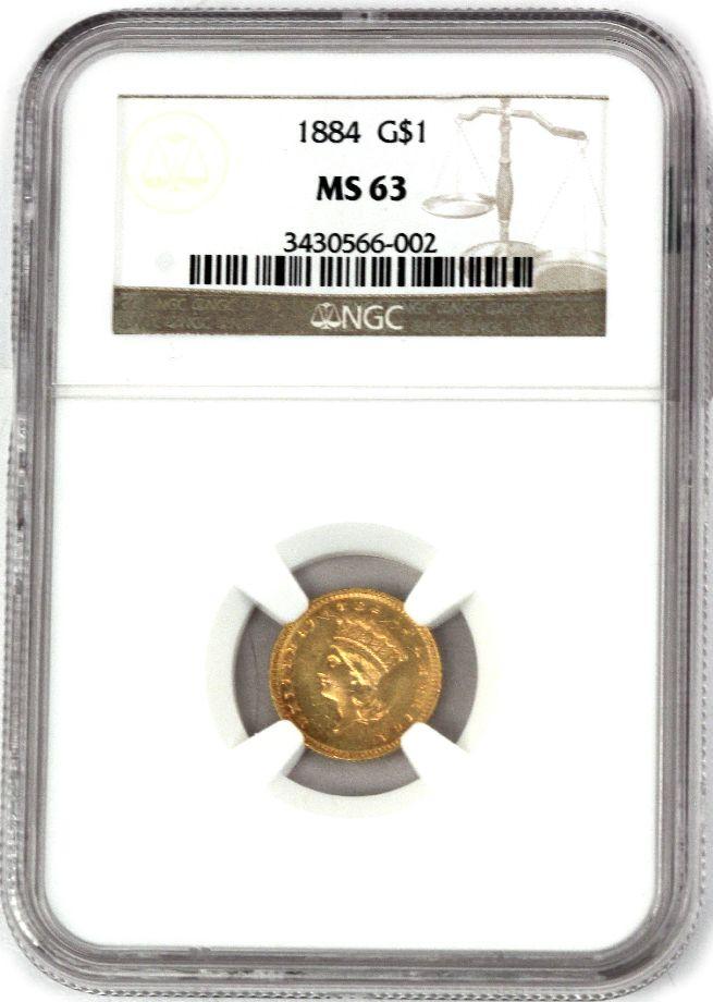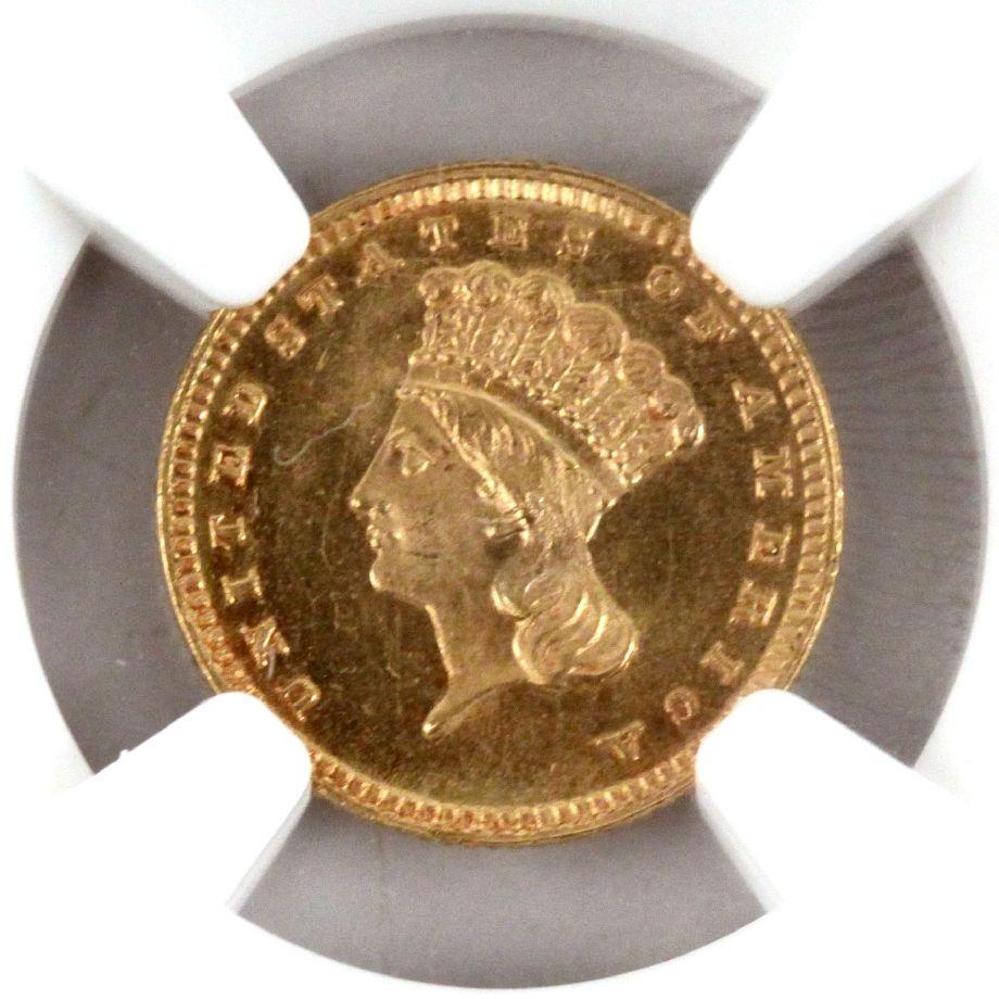 US type III Indian Princess large head $1 gold coin in NGC graded MS-63 holder.