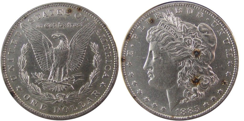 US 1885S US $1 Lustrous AU-55.
