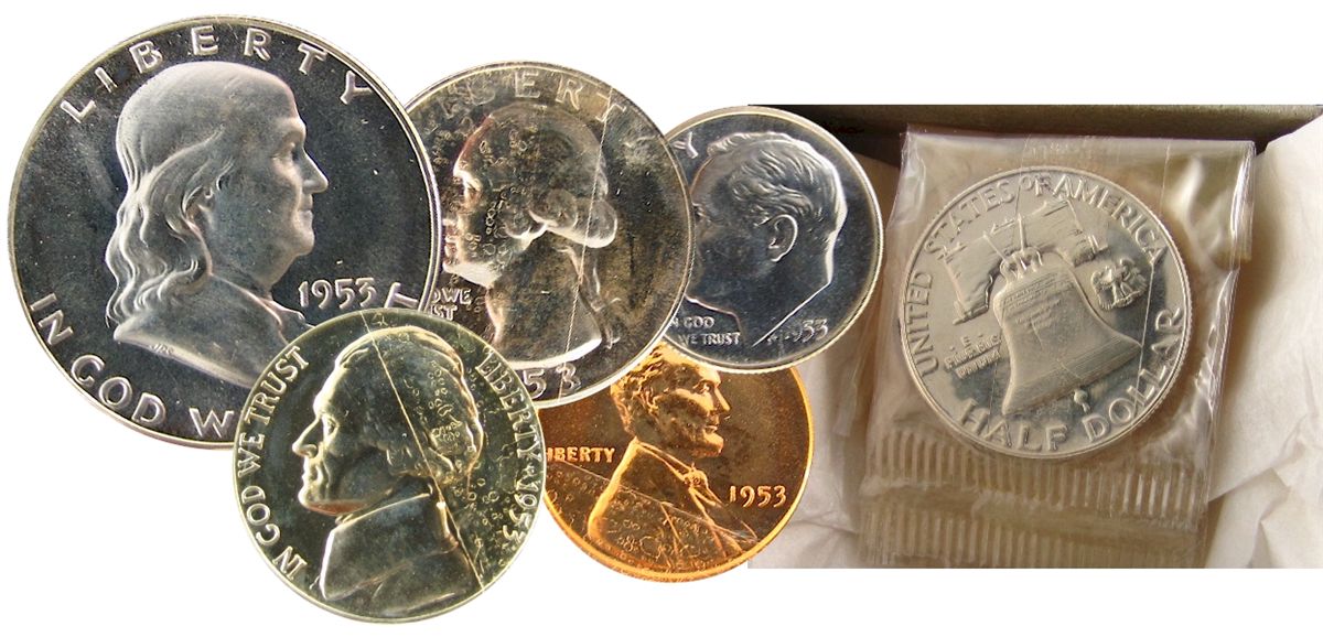 US 1953 Proof Like Box set. Comes in original box with each coin in individual pliofilm.