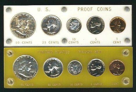 US 1954 & 1957 Proof Set, comes in rigid plastic Capital holders.