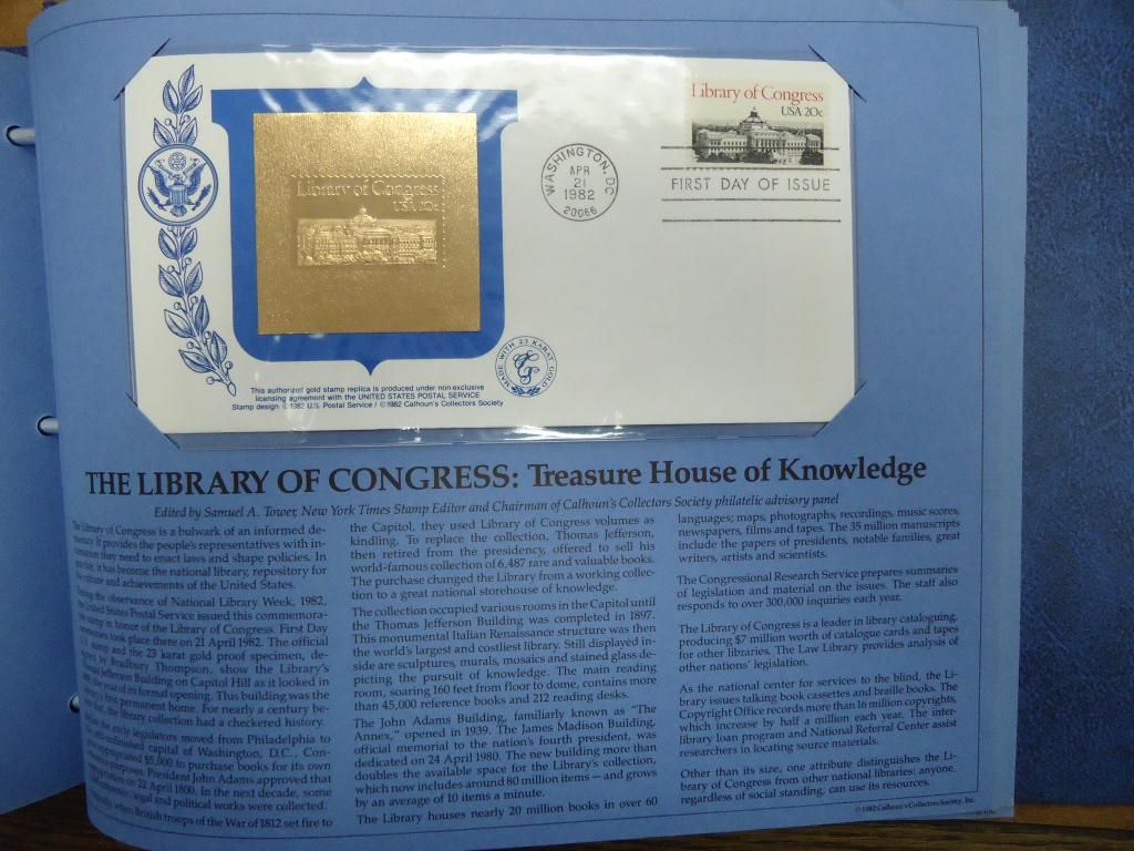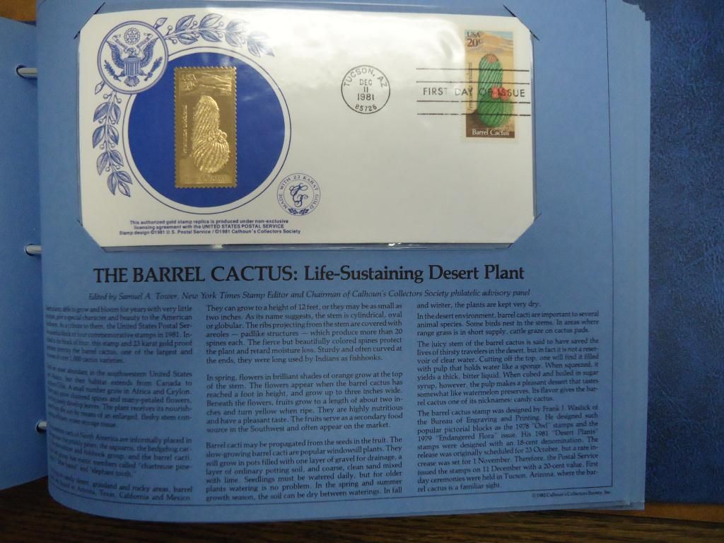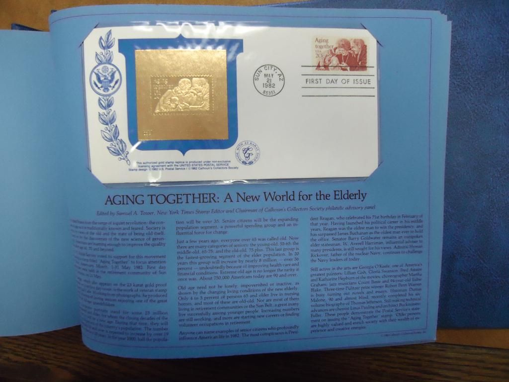 37 PIECES ALL 1981 & 1982, THIS IS THE 1ST SERIES OF US 1ST DAY COVERS TO BEAR AUTHENTIC MATCHING PROOF QUALITY SPECIMENS MADE WITH 23KT GOLD, BY THE CALHOUN'S COLLECTORS SOCIETY, IN NICE BLUE BINDER