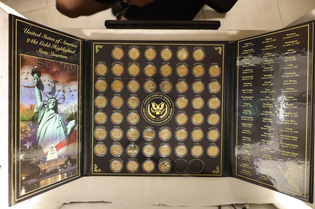 IN DANBURY MINT ALBUM, 54 BRILLIANT UNC QUARTERS. NOT A COMPLETE COLLECTION, MISSING TWO COINS WHICH ARE US VIRGIN ISLANDS AND NORTHER MARIANA ISLANDS