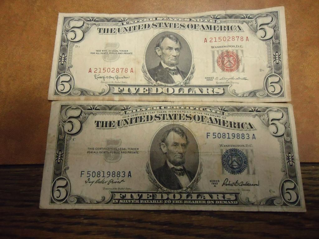 US $5-1953-A SILVER CERT & 1963 US NOTE