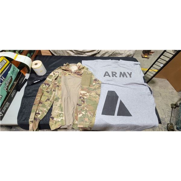 THREE SMALL SHIRTS (ONE COMBAT SHIRT AND TWO PT ARMY SHIRTS)