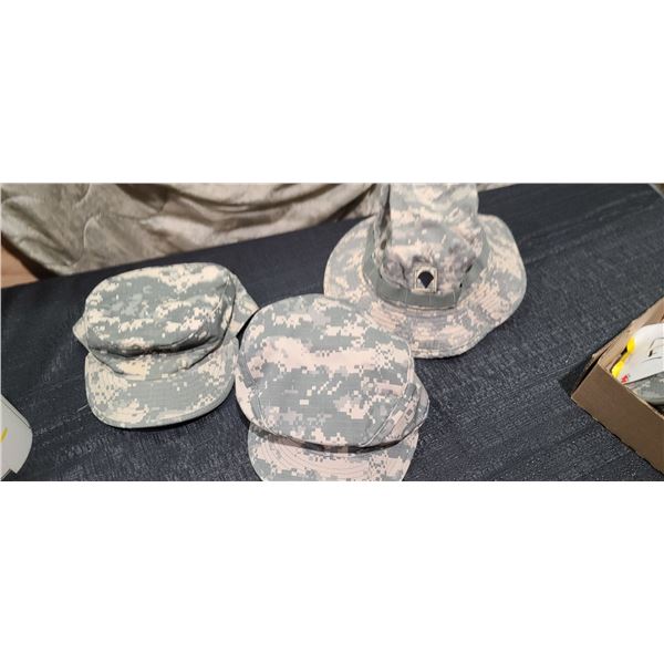 THREE PATROL CAPS IN DIGITAL ARMY COMBAT CAMOUFLAGE ALL SIZE 7 1/8"