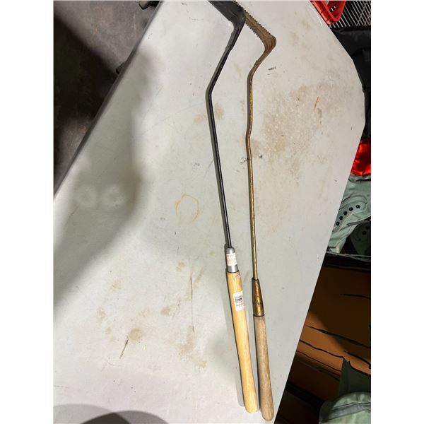 TWO WEEDING TOOLS AND PLANTER WHEELS