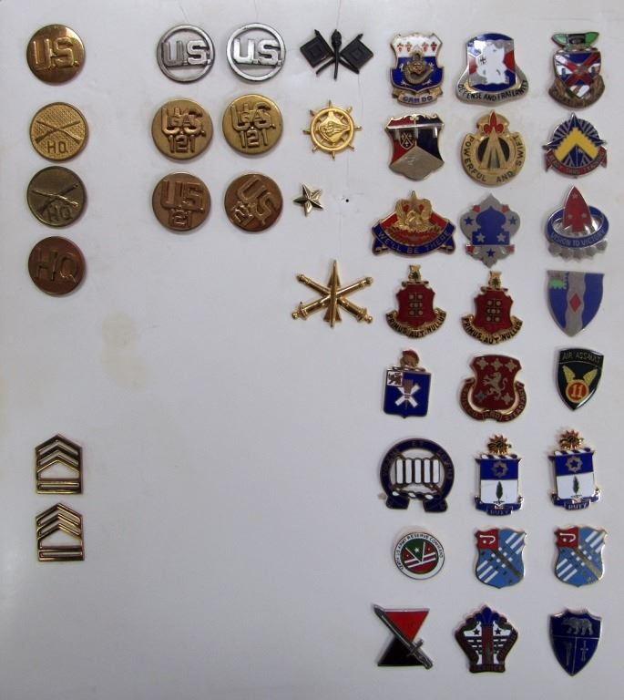 21 DIFFERENT UNIT CRESTS. 11TH AIR ASSAULT. SIGNAL CORPS INFANTRY. 40 PINS IN ALL
