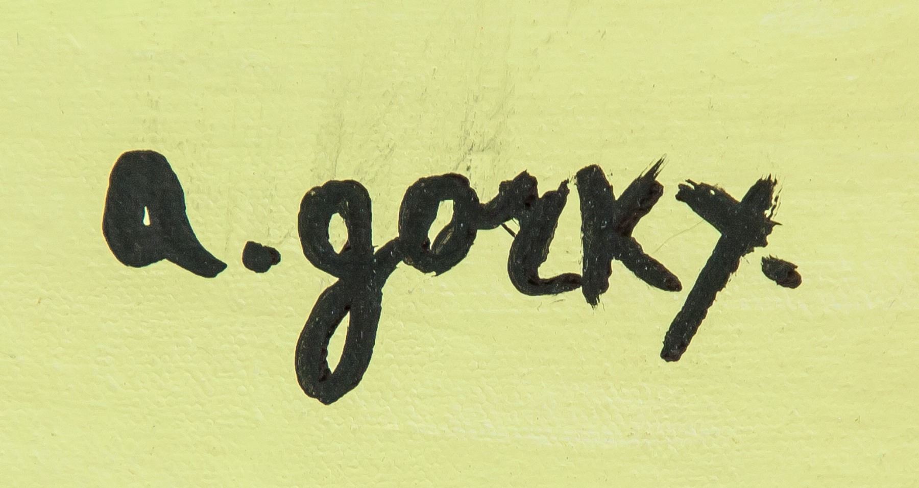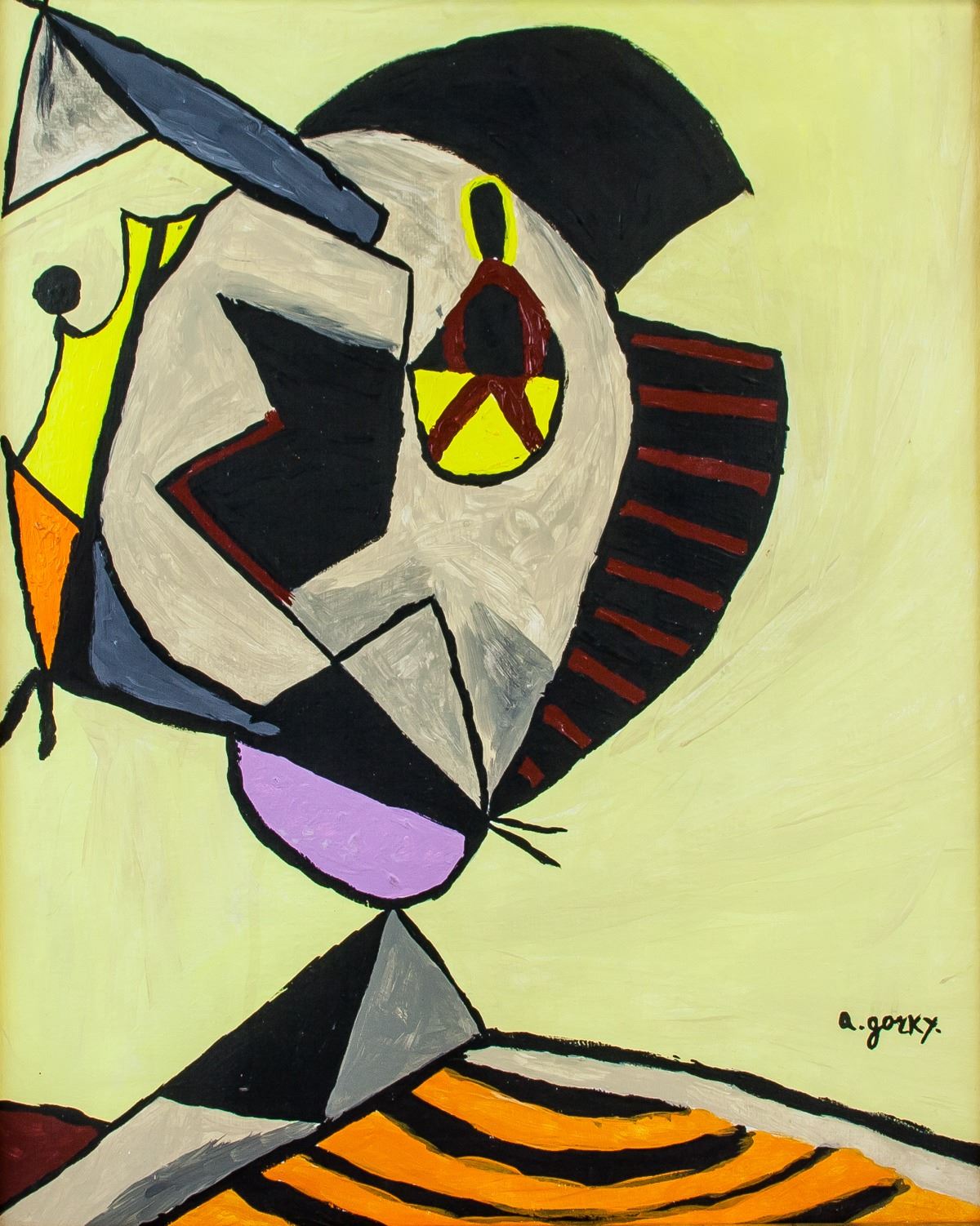 Oil on stretched canvas. Featuring a portrait. Armenian-American Abstract Expressionist School, signed A. Gorky, possible signature of Arshile Gorky on the lower right corner. 52 x 42 cm (20.5 x 16.5 inches). PROVENANCE: Southern Ontario estate.