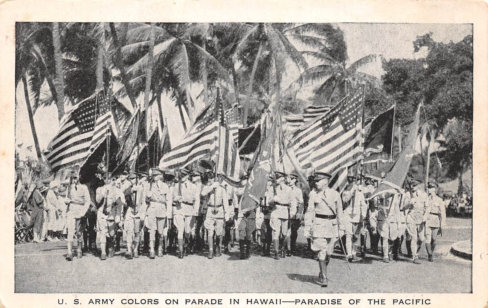 US Army Colors on Parade In Hawaii Vintage Postcard