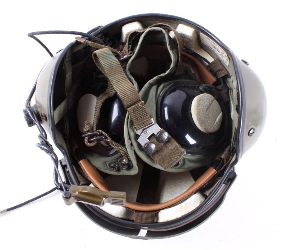 This is a United States Army Helicopter Flight Helmet type SPH-4 made by Gentex. The helmet is in overall good condition with the liner and original built in headset, visor, and head mic. The helmet is marked Helmet, Flyers SPH-4. This is a Vietnam era original rare helicopter helmet. From Captain Mandel.