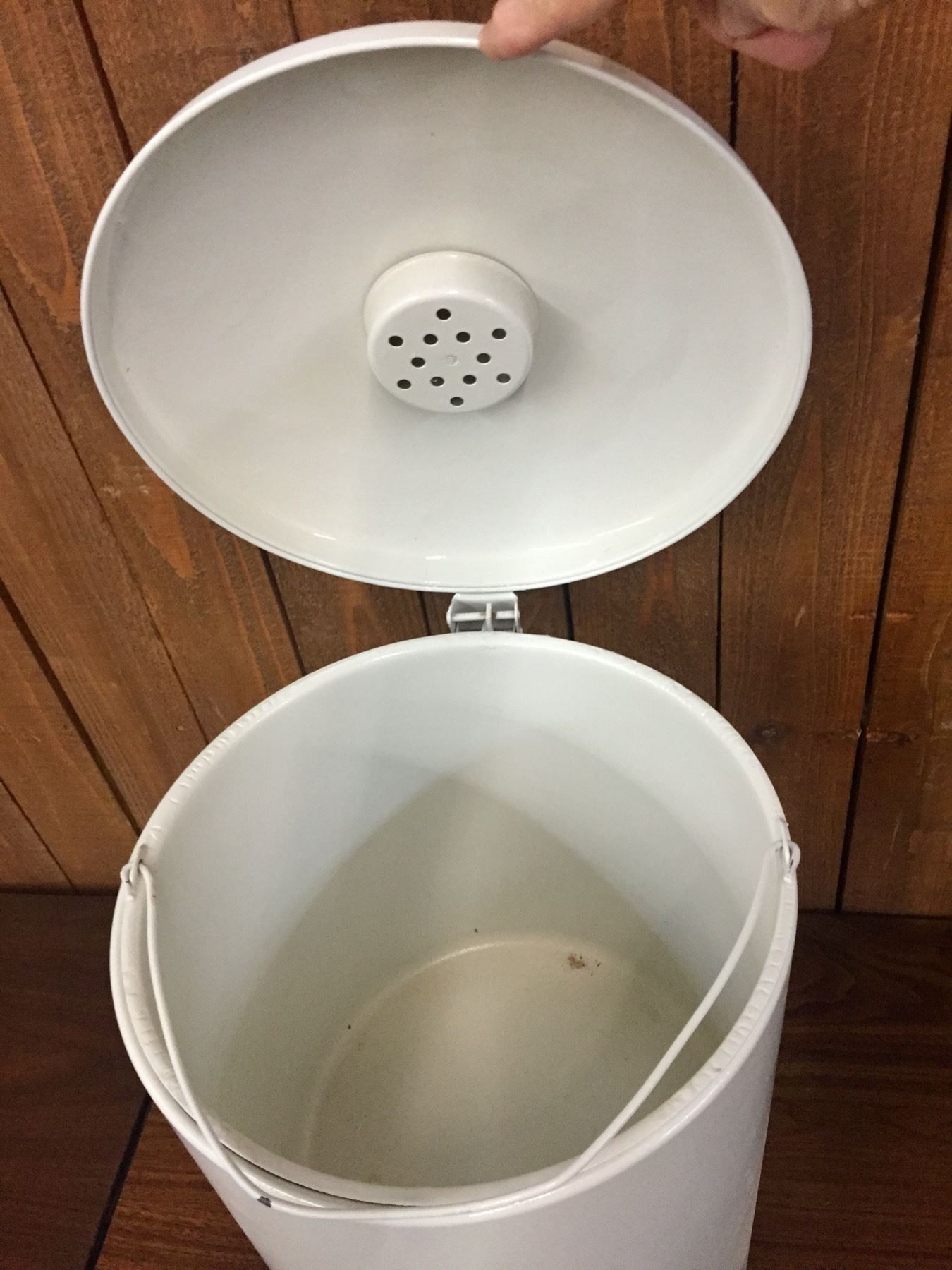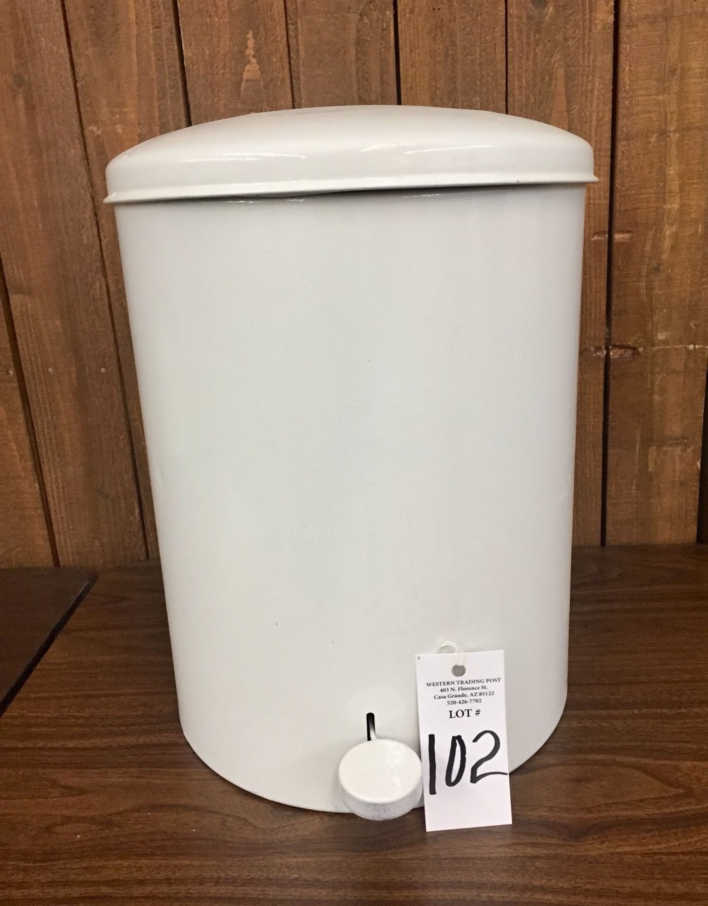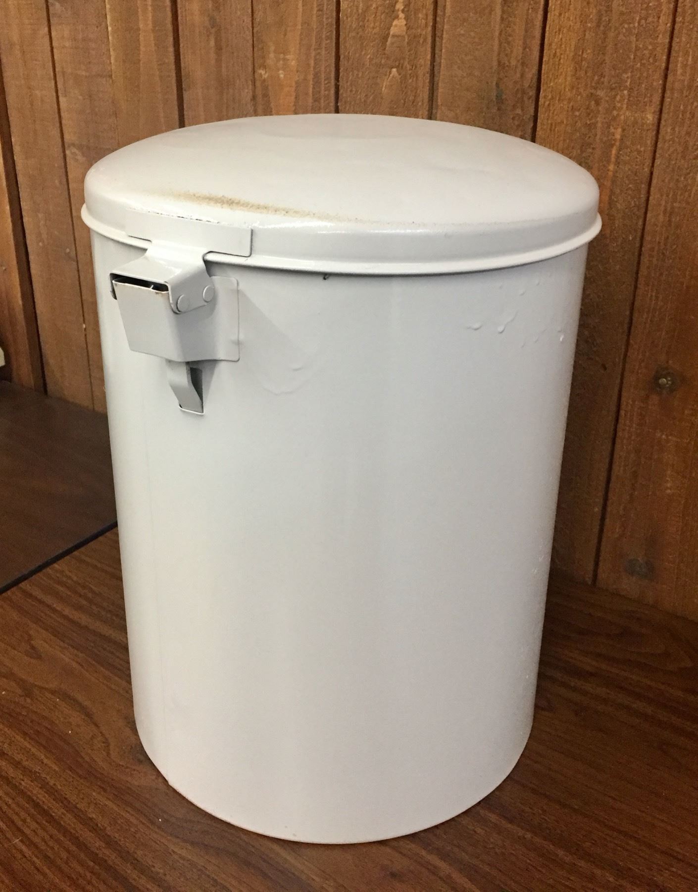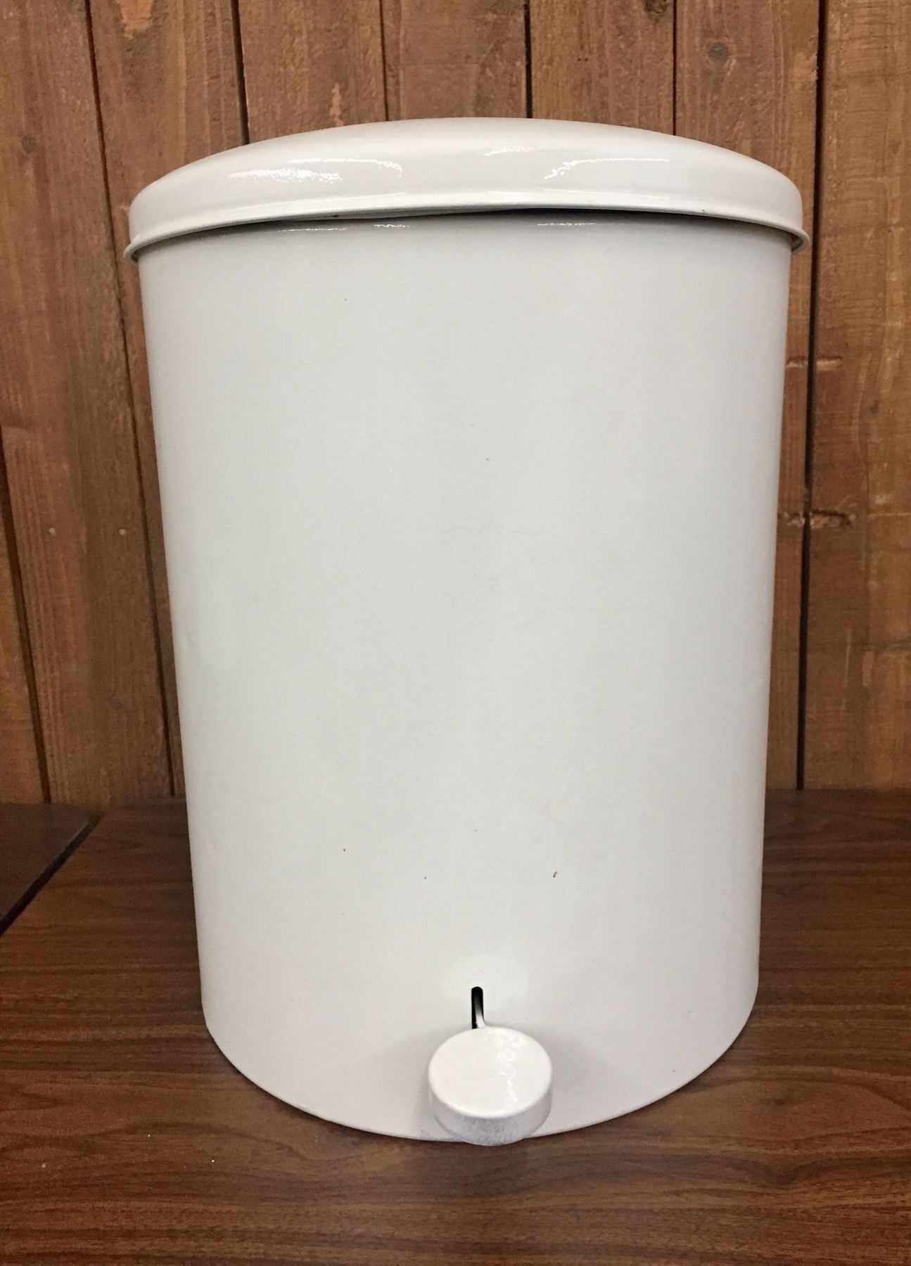 Description: Presented for sale in this lot is a US marked waste paper container or trash can with lid that opens when you step on the lever (which is where the US mark is). Maker: Unknown. Approx. Age: Antique. Size: 12”w x 14-3/4” tall. Condition: Good for its age. Has been repainted. Please look closely at the pictures - they are an important part of our description. Shipping: There will be a $15 handling / packaging fee for shipping this lot. The actual cost of postage will be added on top of that.