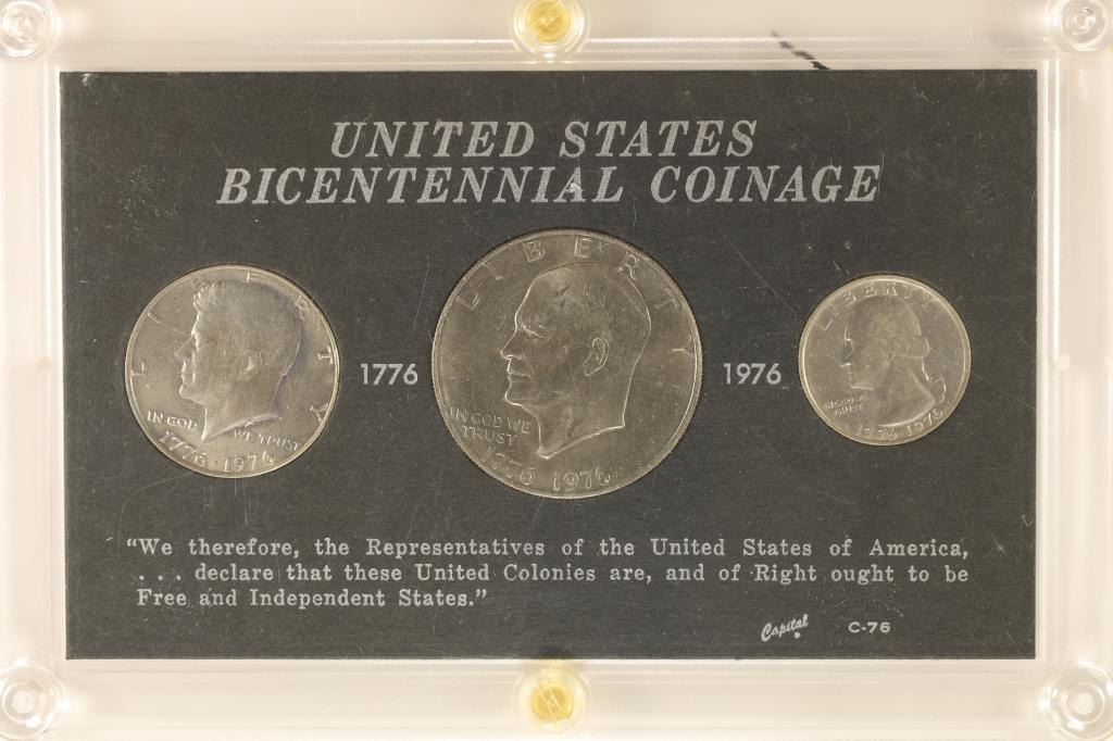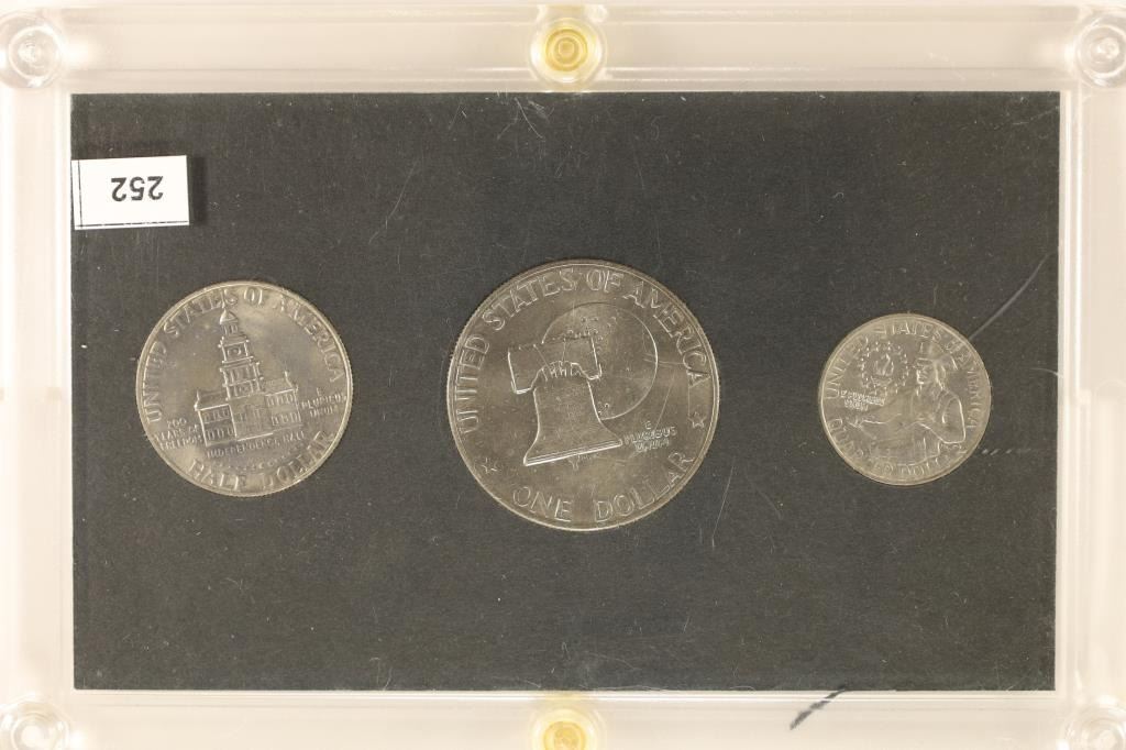 KENNEDY HALF DOLLAR, 1976 IKE DOLLAR AND 1976 WASHINGTON QUARTER IN NICE HARD PLASTIC PRESENTATION CASE