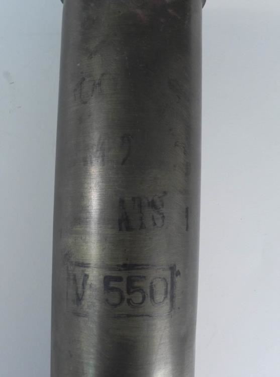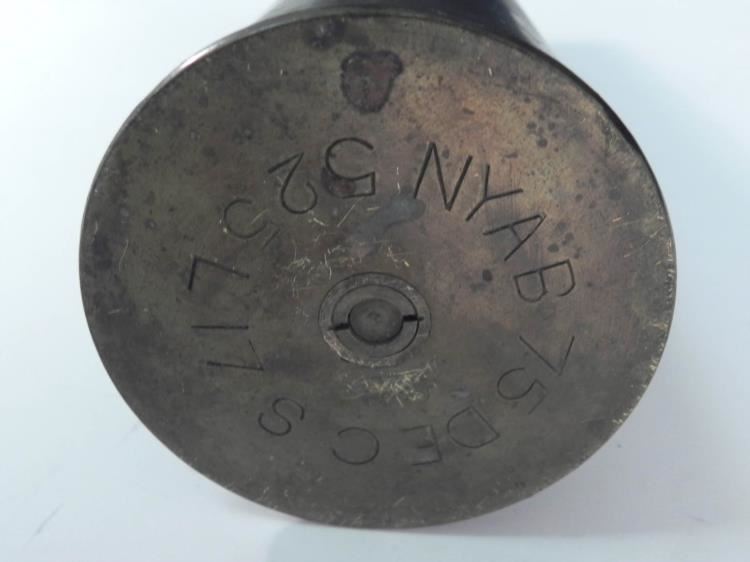 US MILITARY BRASS SHELL CASING-13 3/4" TALL-V550 ATS-L17S-NYAB 75 DEC S---INERT SHELL