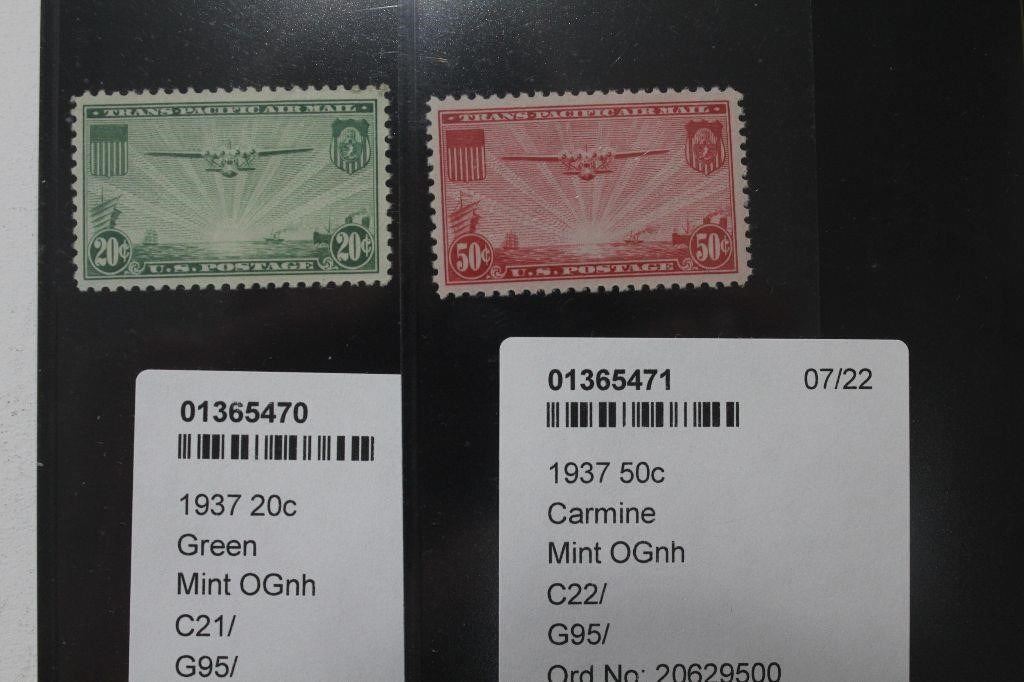 A pair of 1935 CHINA CLIPPER AIRMAIL Issues. MINT-OGNH XF. US #C21-22 Previously graded XF95, Unfortunately the owner lost the certificates. Super well centered and nice these stamps SMQ at 130.00 (no certs)