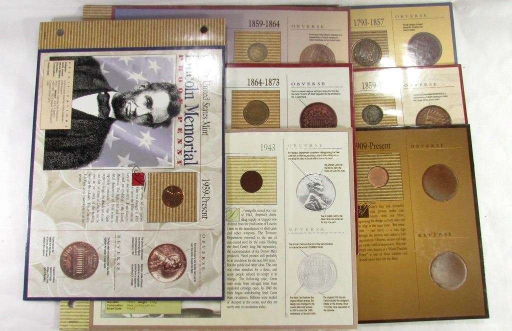 1854 LARGE CENT, 1863 & 1905 INDIAN, 1865 2c, BLANK PLANCHET, (2) LINCOLN CENTS