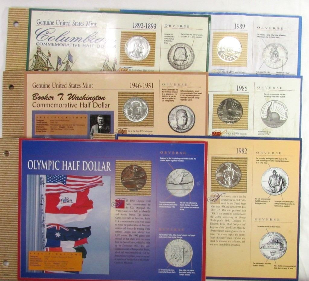 1893 COLUMBIAN, 1950 BOOKER T WASH, 1982 SILVER WASHINGTON, 1986 STATUE OF LIBERTY, 1989 CONGRESSIONAL, 1992 OLYMPIC GYMNIST