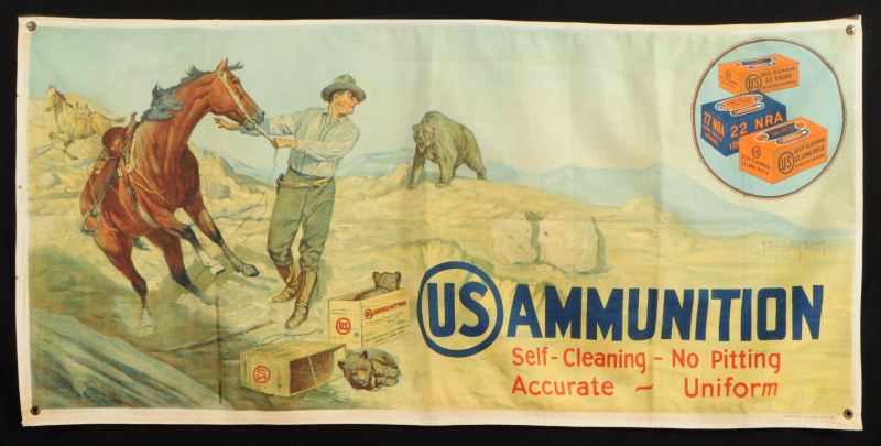 US Cartridge Shooting Gallery Banner. Rare. Est. 1919-1924 Measures 26.5" x 56"