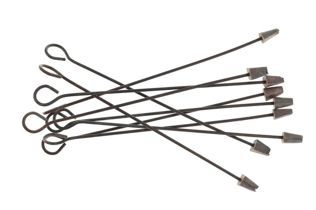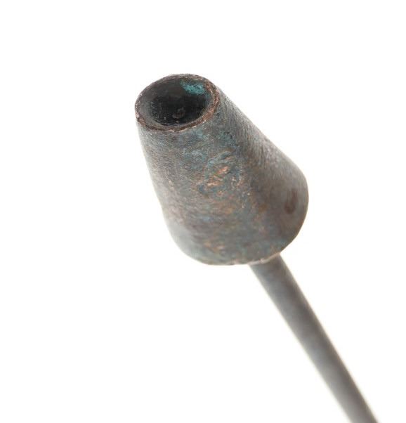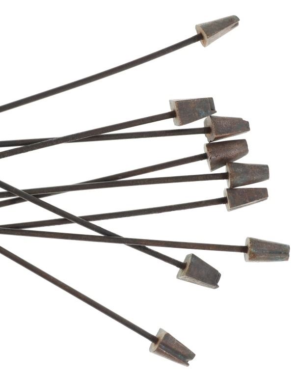 Offered in this lot is a US Cavalry Civil War, circa 1861-1865, hoof branding iron set. This set consists of nine separate irons with these numbers: 0, 4, 5, 6, 7, 8, 9 and a T / J. During the Civil War, more than 7 million horse and mules were in service. It became necessary to have a system for identification for each animal to be established, so that records could be maintained. Officers would also sell their horses, so it became custom for the officer to have to bring the horse's foot back to prove that is was incapable of further service. This set of irons has a copper iron and steel handle. The irons measure 22" long.