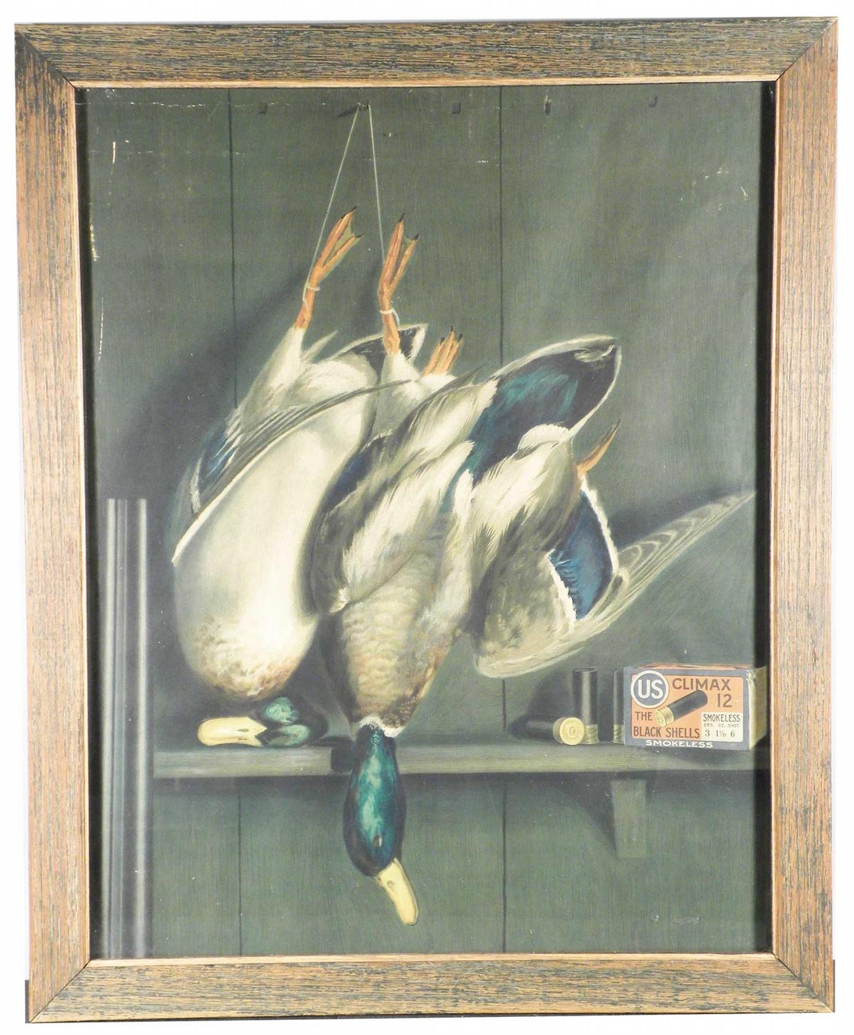 US Climax Calendar Top. The Black Shells Smokeless. Some scuffs at 10:00 and small paper loss at 11:00 otherwise good condition. 17 X 21 1/4 inches.