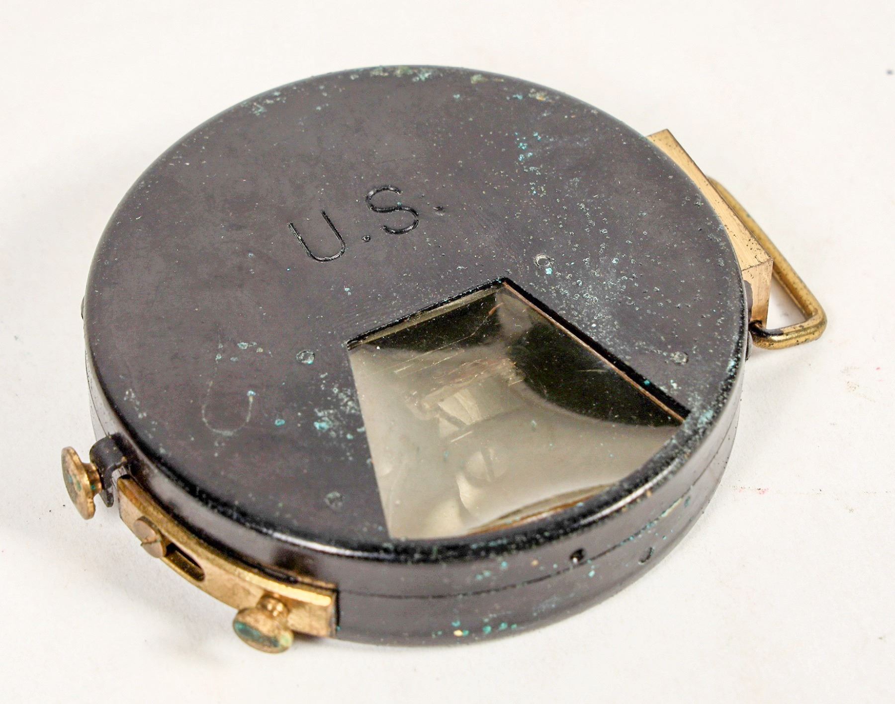 This is a WW2 vintage clinometer. It is without markings and is in the style produced by Schwab & Wuischpard but no markings. Both the clinometer and the case are marked "US". Not in working condition. Please see photo for details.