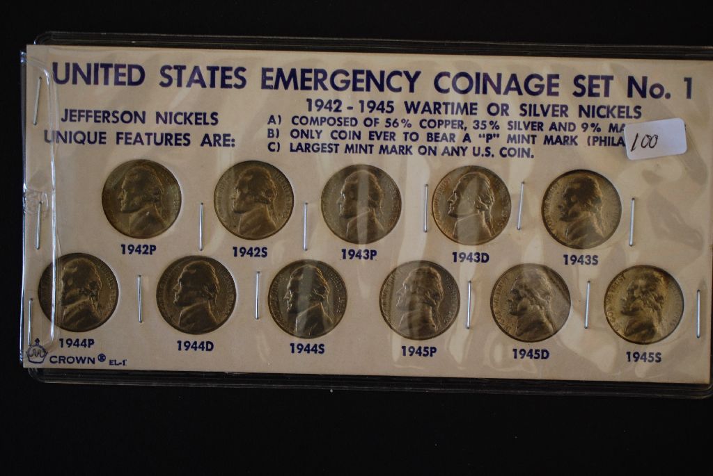 US Emergency Coinage Set #1; Jefferson Nickels 1942P-1945S; Lot of 11; EST. $15-25