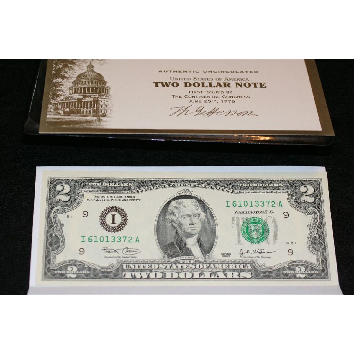 US Federal Reserve $2 Note UNC #I61013372A