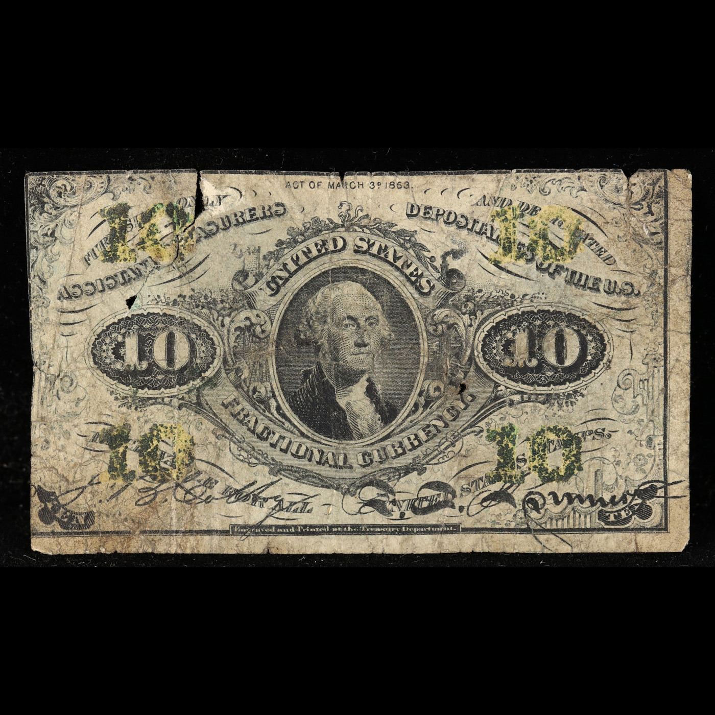 US Fractional Currency 10c Third Issue Fr-1255 Washington Bust Green Reverse Grades vg, very good