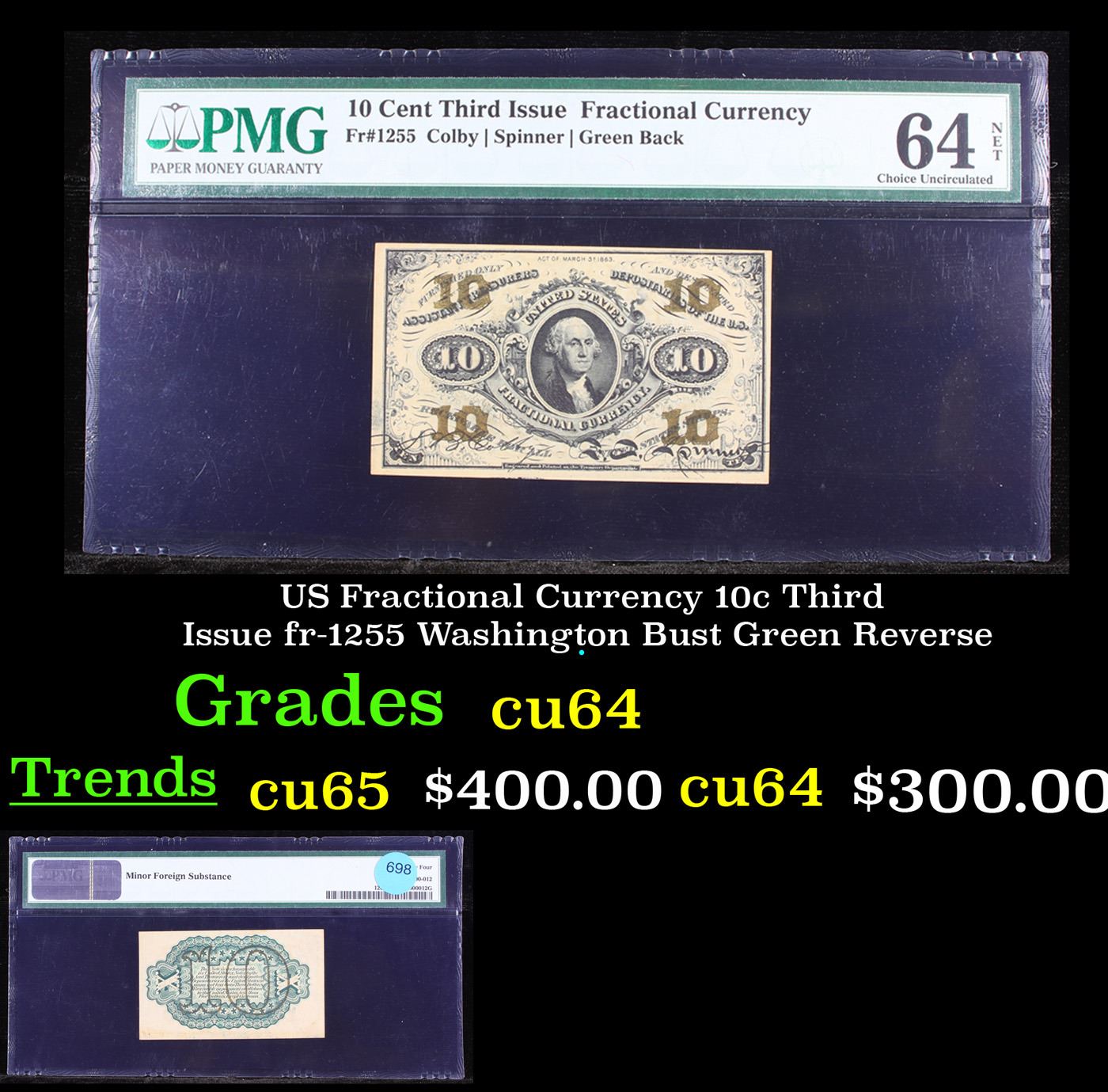 US Fractional Currency 10c Third Issue fr-1255 Washington Bust Green Reverse Graded cu64 By PMG. 0