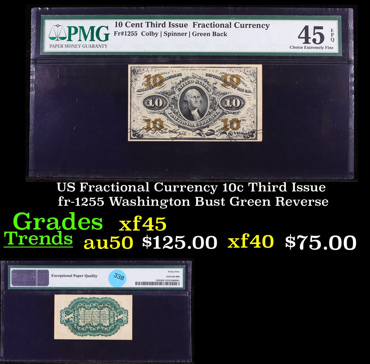 US Fractional Currency 10c Third Issue fr-1255 Washington Bust Green Reverse Graded xf45 By PMG. 0
