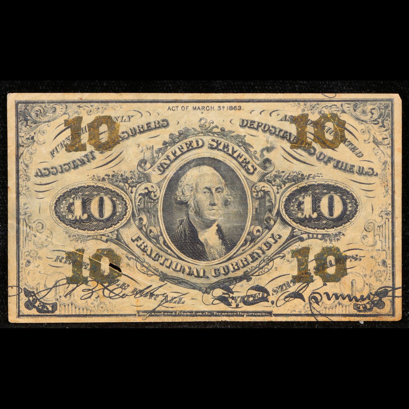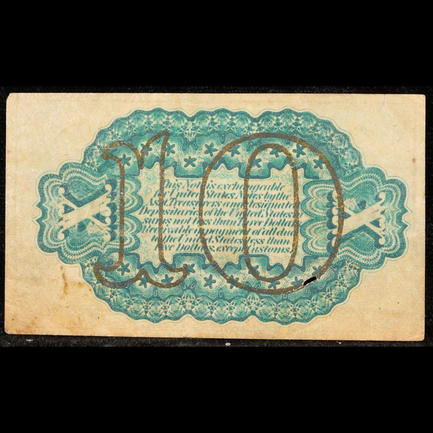 US Fractional Currency 10c Third Issue fr-1255 Washington Bust Green Reverse Grades xf