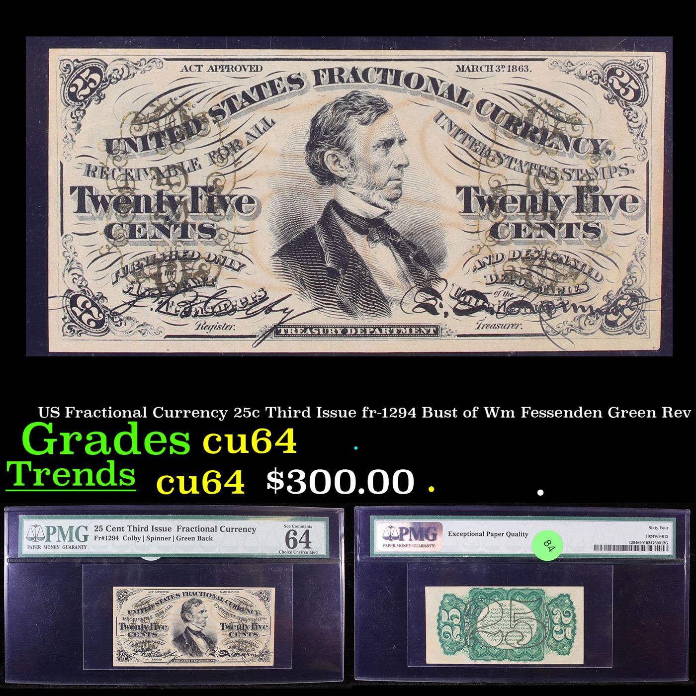 US Fractional Currency 25c Third Issue fr-1294 Bust of Wm Fessenden Green Rev Graded cu64 By PMG