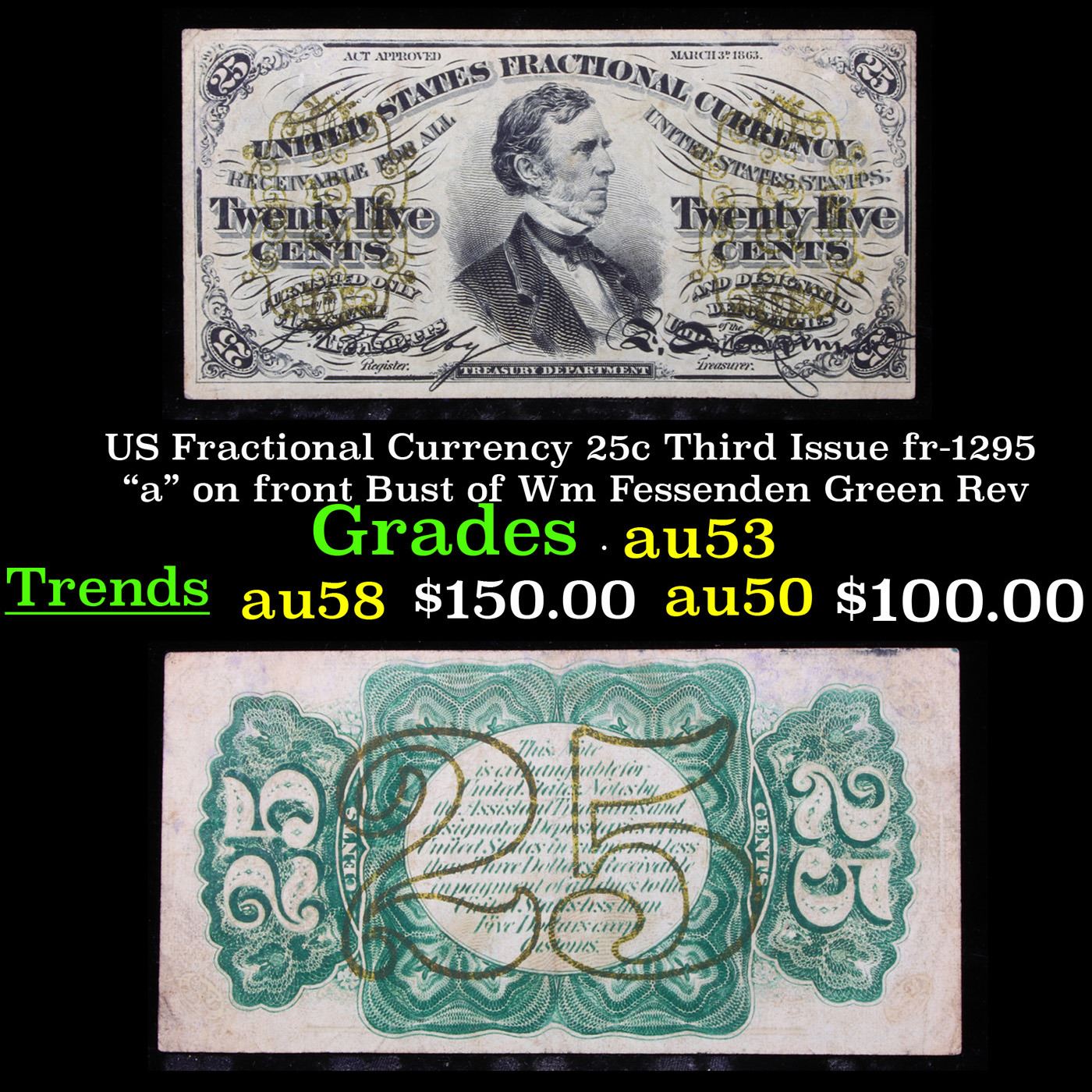 US Fractional Currency 25c Third Issue fr-1295 "a" on front Bust of Wm Fessenden Green Rev Grades Se