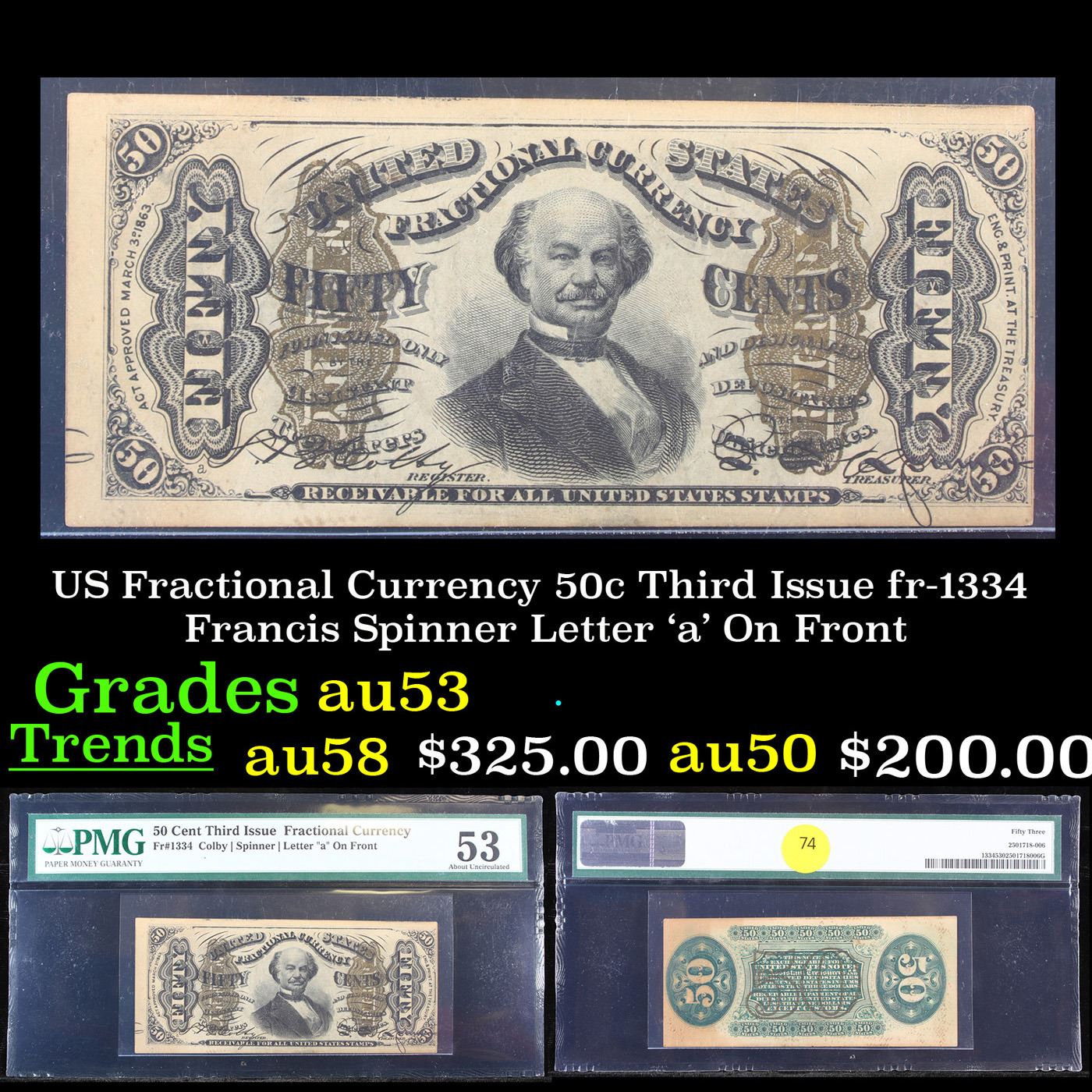 US Fractional Currency 50c Third Issue fr-1334 Francis Spinner Letter 'a' On Front Graded au53 By PM