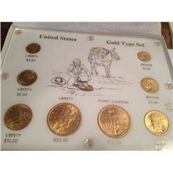 US GOLD SET, INCLUDES 1908 $20 ST GAUDENS MS-63, 1914 $10 INDIAN HEAD MS-63, 1907 $10 LIBERTY MS-61, 1907-S $5 GOLD LIBERTY, 1911 $5 GOLD INDIAN HEAD AU-58, 1911 2 1/2 GOLD INDIAN AU AND A 1907 2 1/2 GOLD LIBERTY AU. Picture shows $20 Liberty which is Not Include