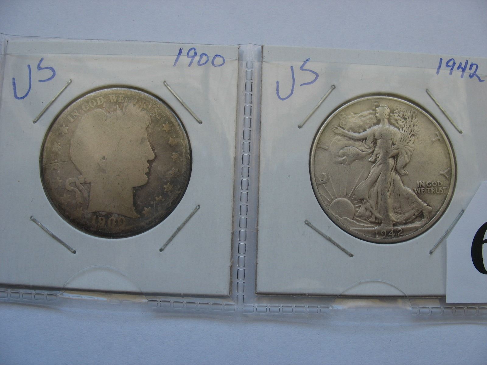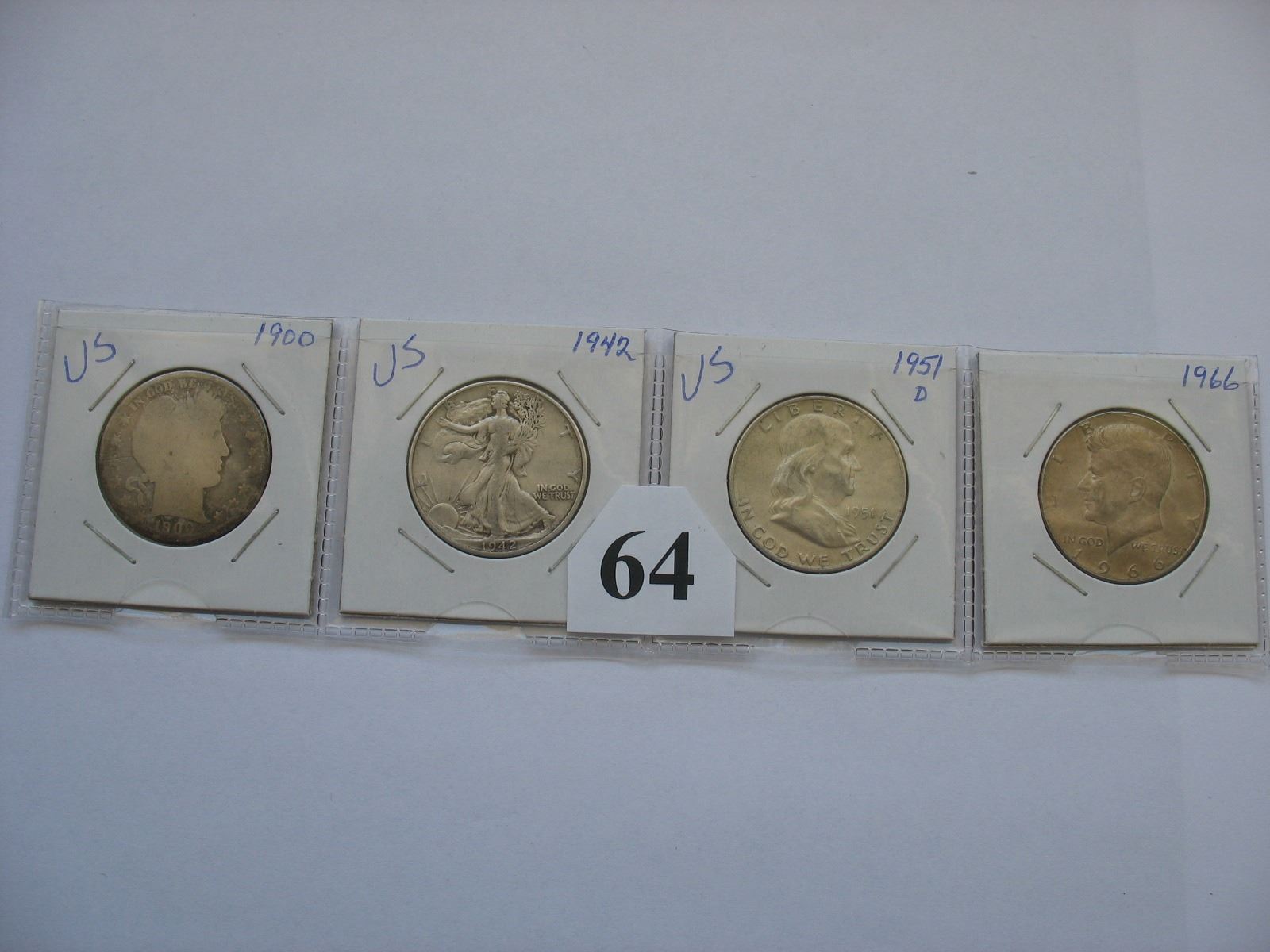 US Half Dollars Lot (1900, 1942, 1951, 1966)